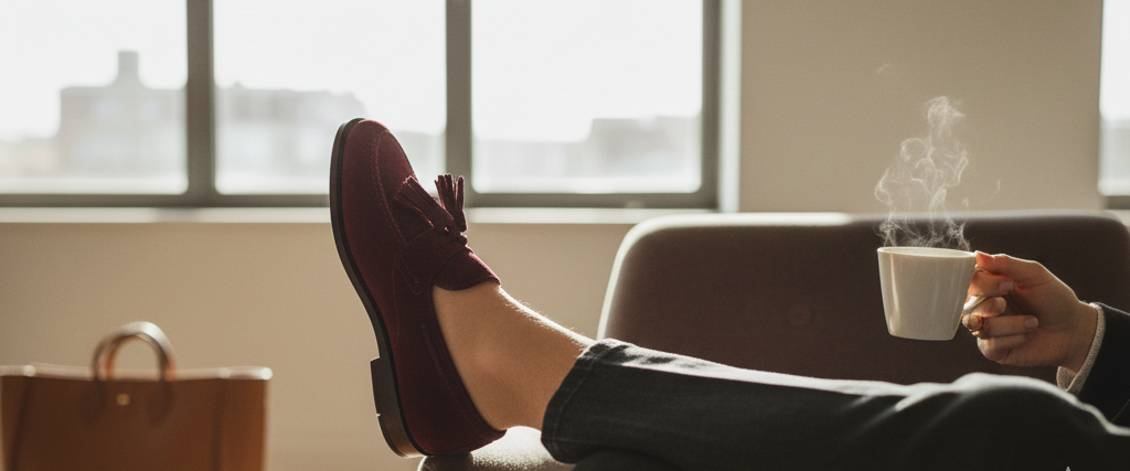 At the heart of the collection are our signature Leather Loafers. Hand-cobbled from supple, full-grain Italian calfskin, each pair is a study in silhouette and structure. The leather, sourced from world-renowned tanneries, features a natural, buttery finish that will develop a unique patina over time—a living record of the wearer’s journey. Our artisans utilize a traditional hand-stitching technique that ensures both longevity and an unparalleled glove-like fit, making them the ultimate versatile essential. Whether paired with a sharp, tailored blazer for the boardroom or relaxed cashmere for a weekend in the city, these loafers project an air of effortless confidence.